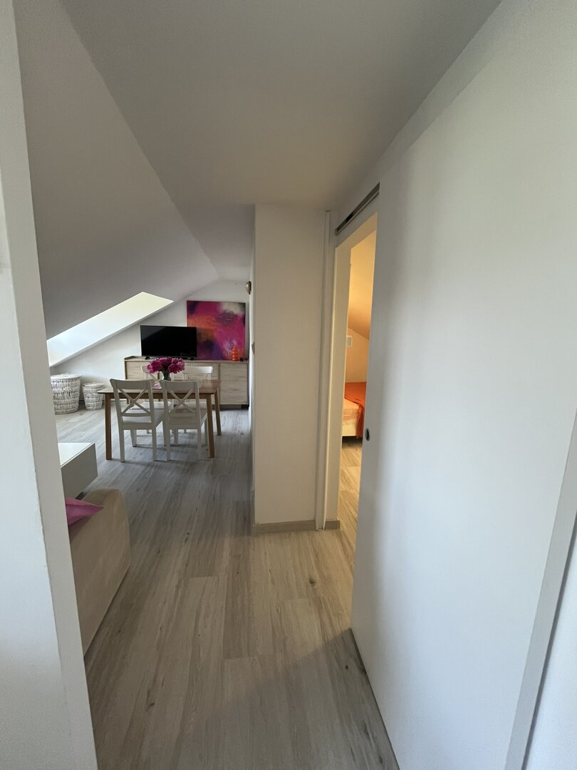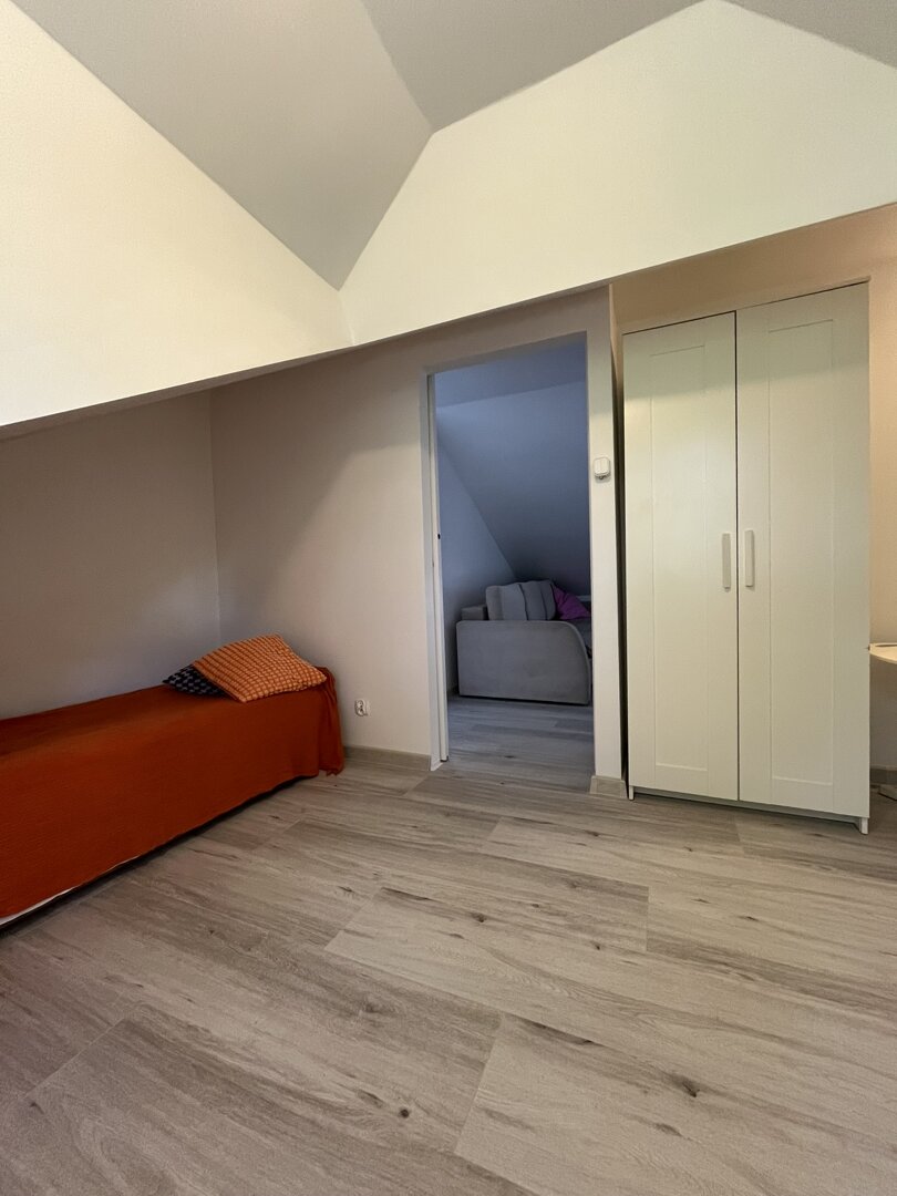 Apartament zlokalizowany jest na poddaszu samodzielnego budynku na pierwszym piętrze. Posiada niezależne wejście od strony ogrodu. W budynku apartamentu nie ma więcej jednostek mieszkalnych co gwarantuje dużą swobodę i komfort mieszkania.